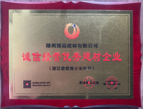 浙江省誠(chéng)信經(jīng)營(yíng)優(yōu)秀建材企業(yè)