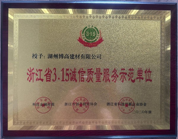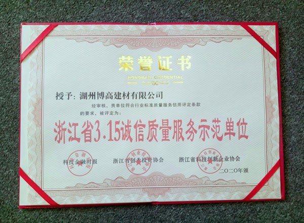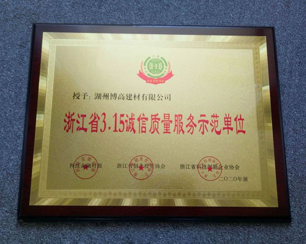 浙江省3.15誠(chéng)信質(zhì)量服務(wù)示范單位