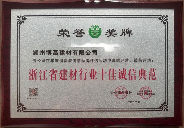 浙江省建材行業(yè)十佳誠(chéng)信典范